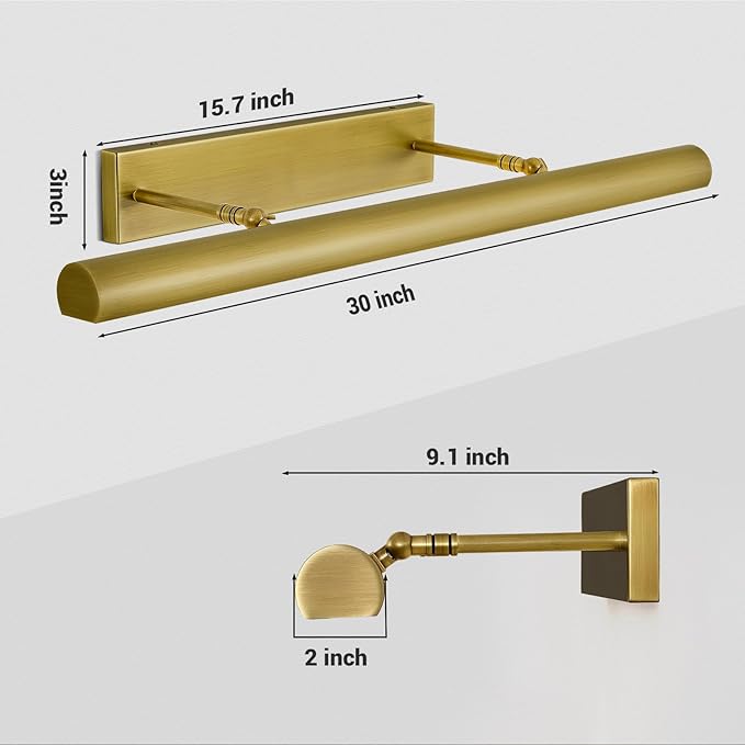 - 30" Picture Light: 30"W x 9.1"D