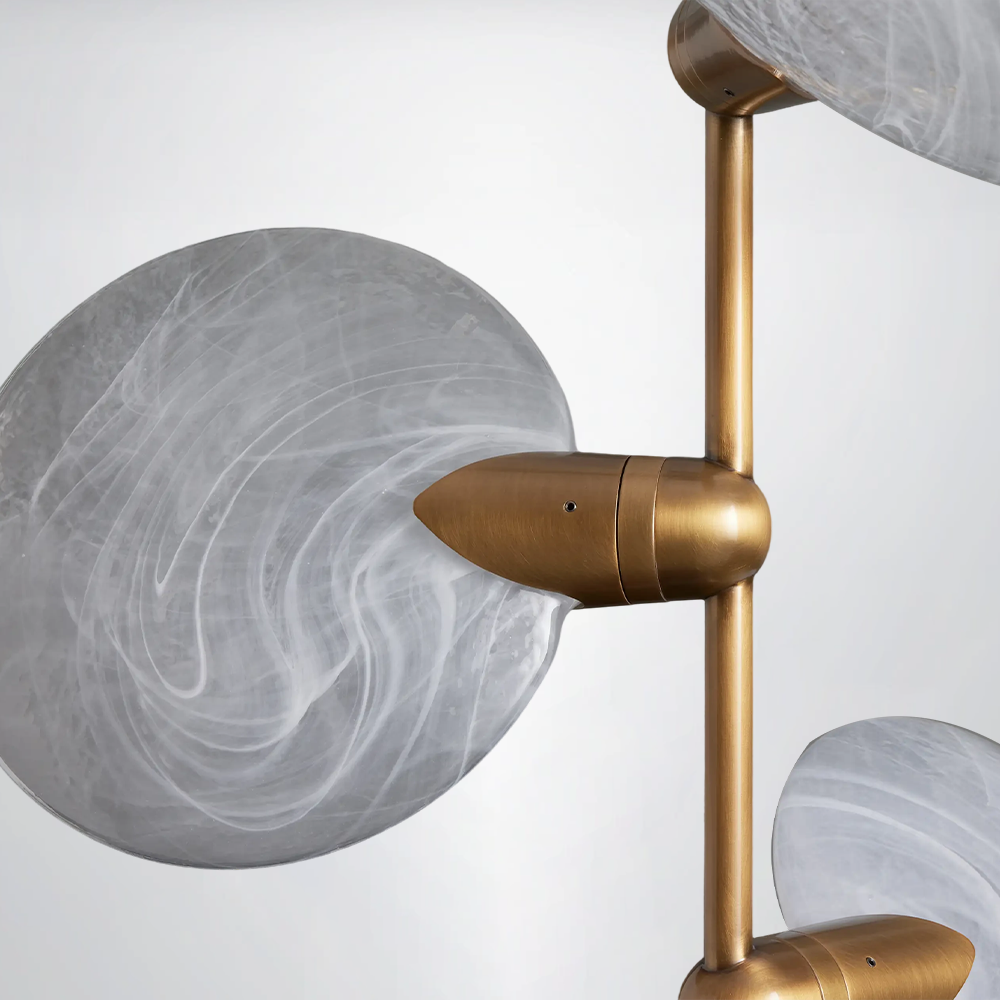 Our artfully crafted Gaky Collection brightens any room with its captivating petal-like silhouette. Each disc is hand-blown from translucent glass, the light within illuminating the natural swirls, streaks, and textural ripples.