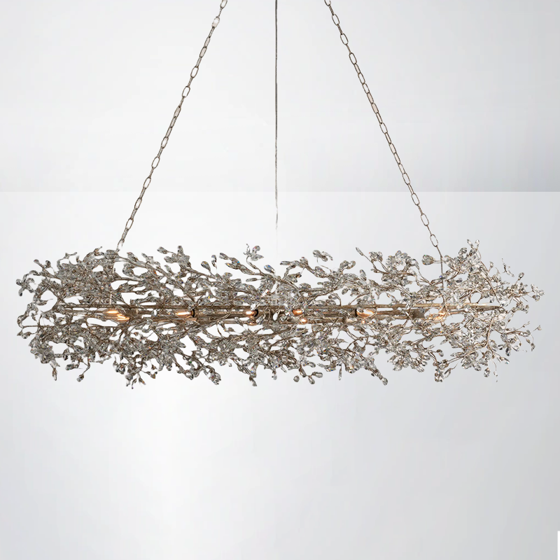 Luxurious crystal florals and drops illuminate each branch-like form of our elegant Giore Lighting Collection. Crafted by our artisan partners in Italy from solid iron hand-finished in your choice of silver leaf, gold leaf, brass, or bronze, each piece is inspired by the beauty of nature and celebrates premium craftsmanship.