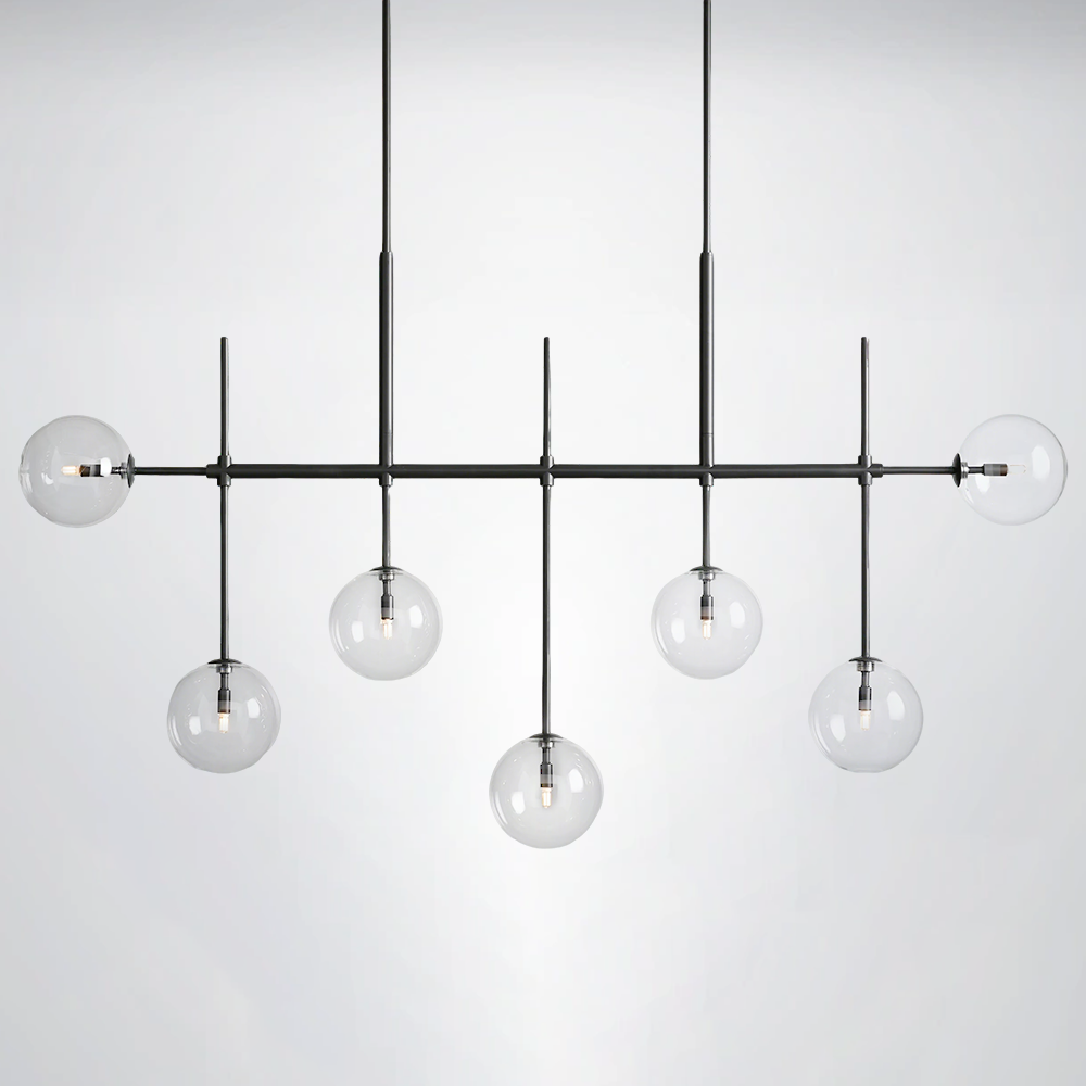 Statement-making fixtures with chic, modern flair, our Doscoe Lighting Collection is artisan-crafted from iron with complementing finishes to elevate your space. Stunning hand-blown glass globes encase the bulbs, dispersing light at every angle.