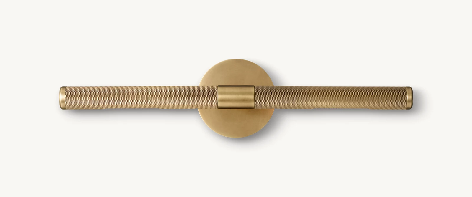 Inspired by the classic museum fixture, Jonathan Browning reimagines the utilitarian picture light. Crafted of solid brass, the fixture's strength is matched by its handsome proportions. The knurled texture addresses the functional need to grip and rotate, while lending it an industrial edge.